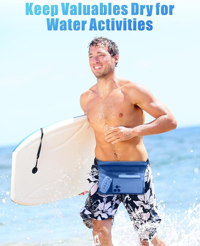 • Hands-free for Water Sports - The waterproof bag with waist strap works as a waterproof waist pouch carrying your valuables and frees up your hands, so you can fully enjoy surfing, kayaking, paddle boarding, raft, fishing, water parks or other water sports.