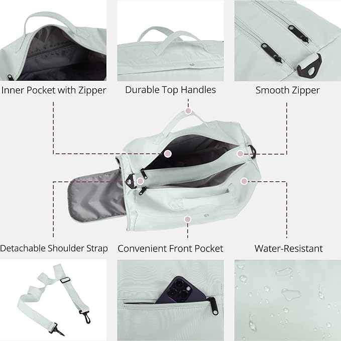 - Multi-purpose Duffel Bag - With handles and adjustable, detachable shoulder strap, you can use it as handbag, shoulder bag or cross body bag. It not only can be a gym bag, but also can be a dry wet separated swimming bag, beach bag, dance bag, shower bag, hospital bag, overnight bag or weekender bag. Perfect for traveling, weekend trip, gym, yoga, work, shopping, beach or daily use.