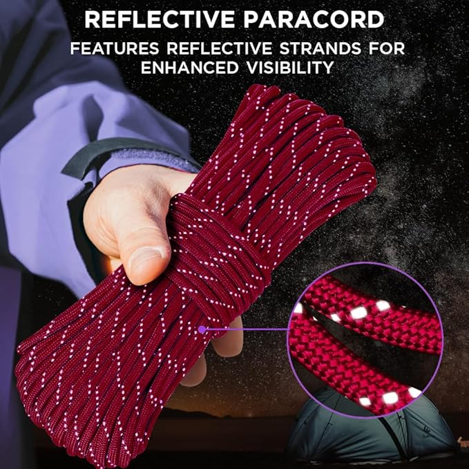 - MULTIPURPOSE: Versatile, flexible and of a great strength, para cord is very multi-functional. It is used as a tent cord to set up tents, safely secure hammock or hang heavy items such as bikes and kayaks in your garage or basement. Serves as a safety rope in emergency situations. Ideal for crafting custom accessories: lanyards, bracelets, dog collars, keychains, belts, wrapping axes, knives, tools & other DIY projects.