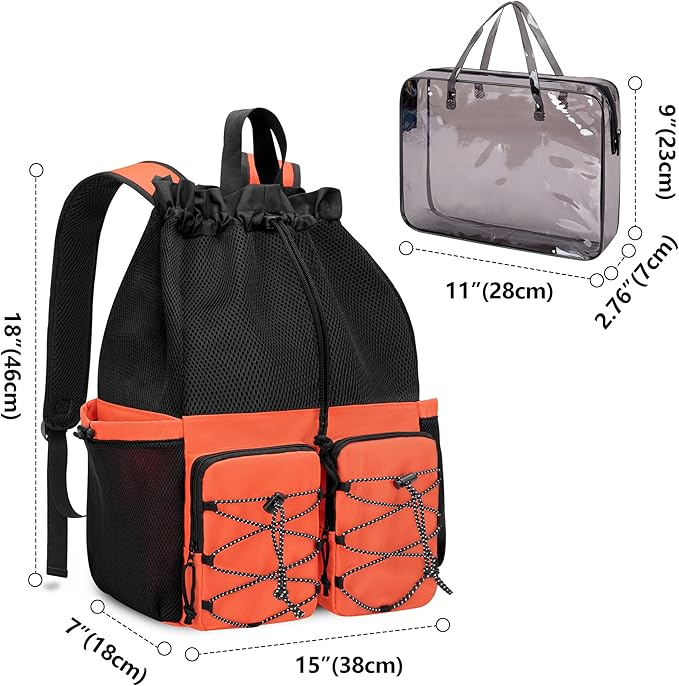 - MESH BEACH BACKPACK: This mesh beach bag measures 15x7x18 inches. Main compartment is roomy enough to hold your family beach accessories, swimming equipment or sports items. (Empty bag only, NOT includes any accessories.)
