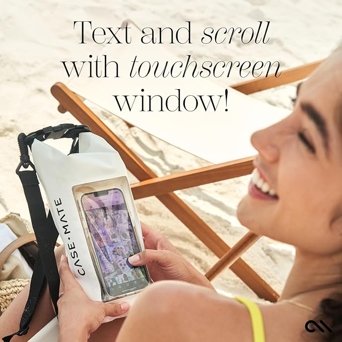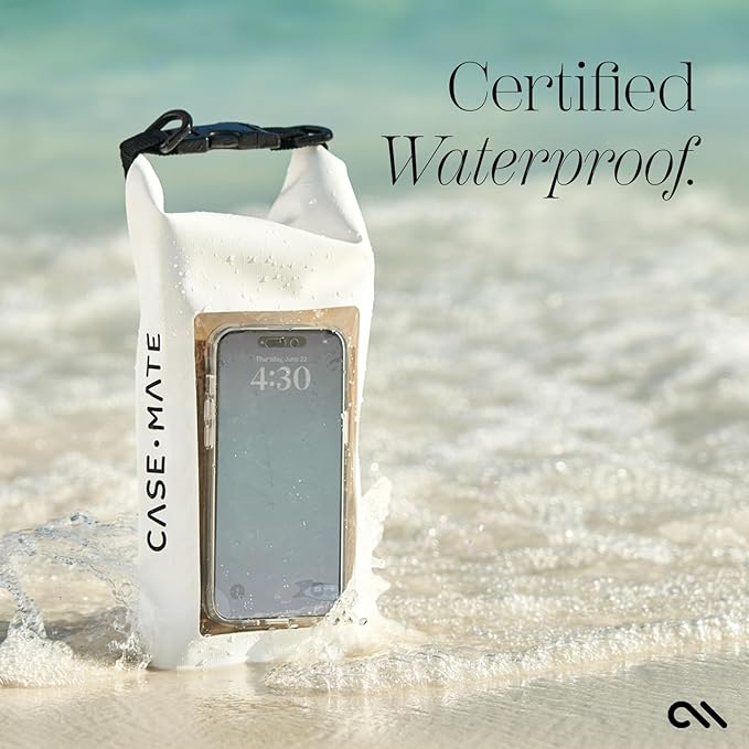- Stylish Protection with 1-Year Coverage: Explore Case-Mate's chic & protective Water Bag for Phone — blending luxurious design with enhanced durability since 2005! The Casemate beach bag set keeps your essentials dry with its waterproof sling bag in a Sand Dollar finish, featuring a built-in waterproof pouch for swimming, along with a detachable black keychain lanyard. Enjoy worry-free adventures with our 2L dry bag, backed by a 1-year warranty.