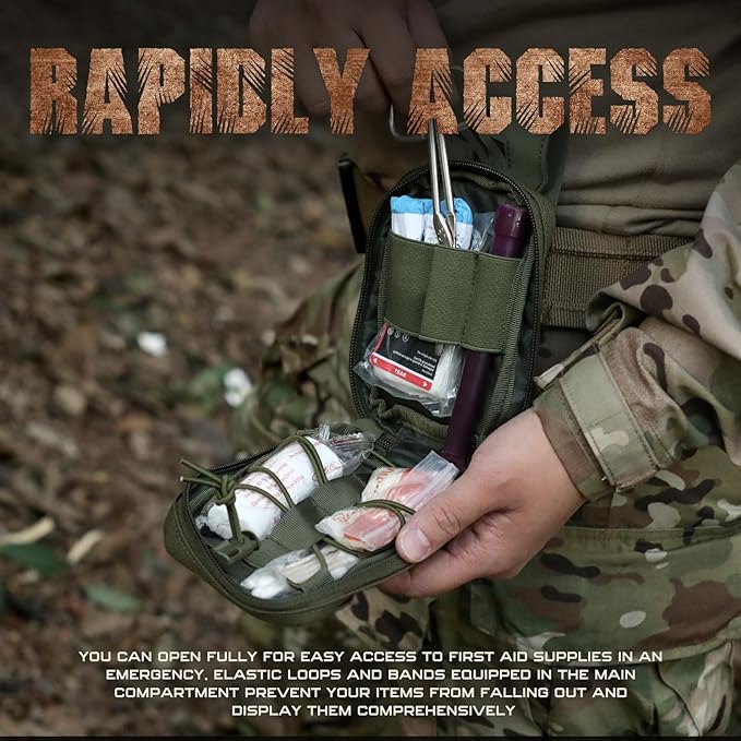 - STREAMLINING SUPPLIES FOR OUTINGS: With this Tactical Trauma Pouch, you may go hiking, camping, climbing, or other outdoor activities without worrying about a medical emergency. It is lightweight and compact, allowing you to put it in various places(home/car/workplace) for immediate retrieval.