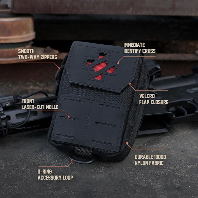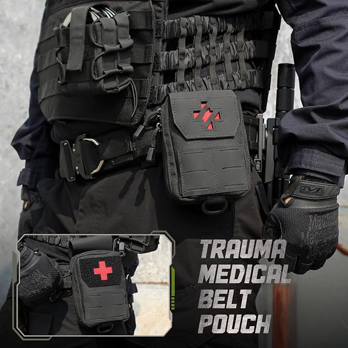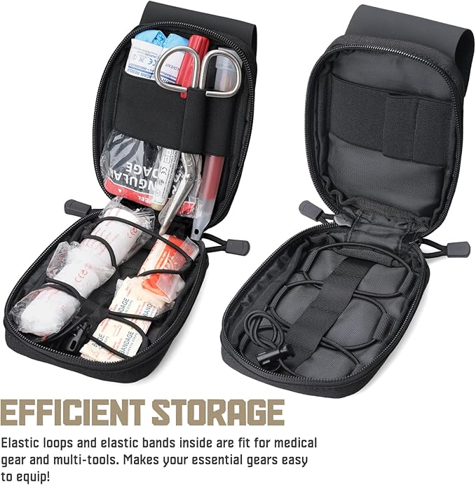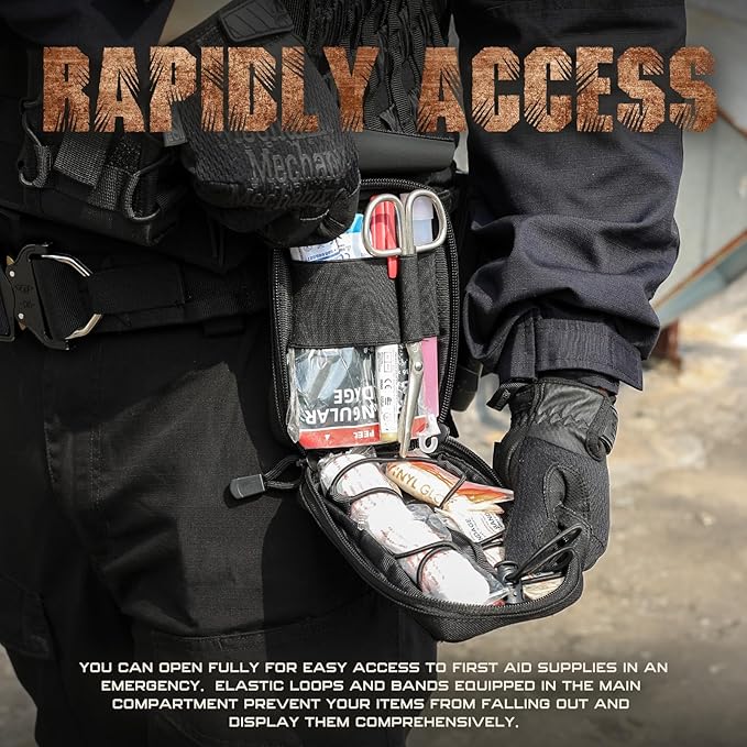 - STREAMLINING SUPPLIES FOR OUTINGS: With this Tactical Trauma Pouch, you may go hiking, camping, climbing, or other outdoor activities without worrying about a medical emergency. It is lightweight and compact, allowing you to put it in various places(home/car/workplace) for immediate retrieval.
