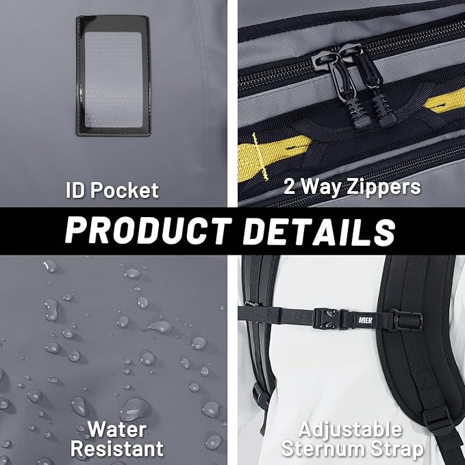 - Functional Construction ---- Daisy chain loops and "D" rings on strap for extra attachments; Innovative compression strap system helps compact large loads; Smooth "MIER" brand zipper and strong buckles, box-stitched on every stress points, being more durable and tough, make MIER bag ready for a lifetime of adventures