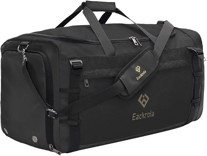 Eackrola Extra Large Sports Gym Bag, Travel Duffel bag with Wet Pocket & Shoes Compartment for men women, 85L, Lightweight (Black)