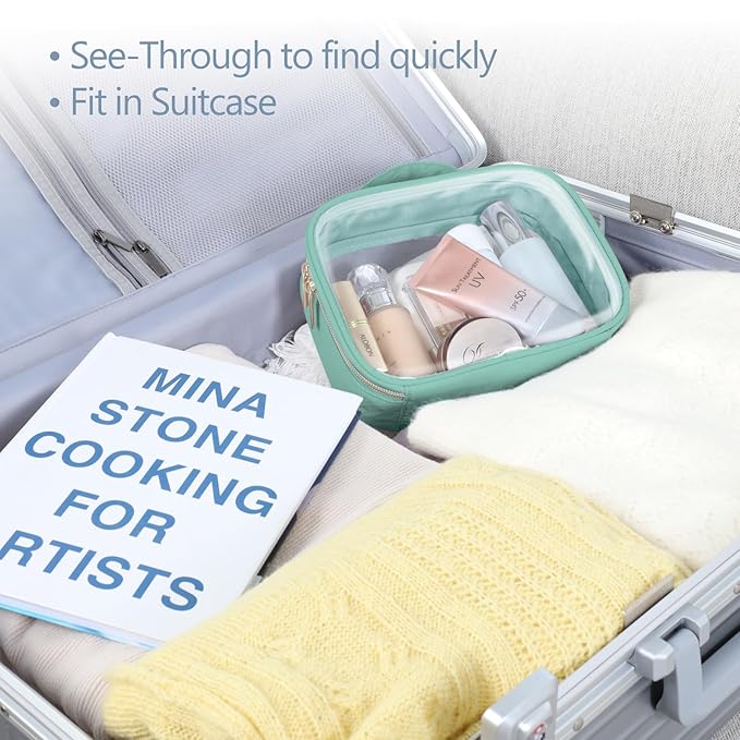 PACKISM TSA Approved Toiletry Bag, 2 Pack Clear Makeup Bags with Handle Large Opening, Clear Toiletry Bags Fit Carry-on Travel Essential, Travel Bags for Toiletries, Turquoise Green