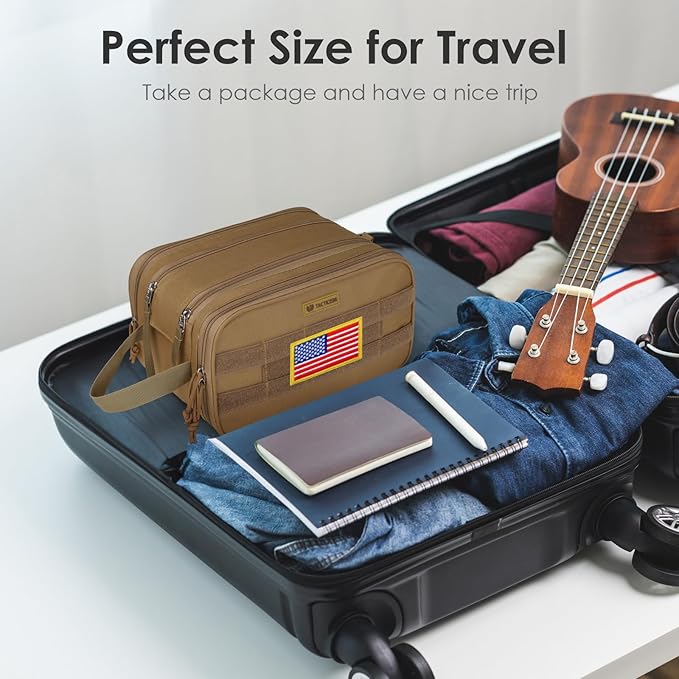 TACTICISM Toiletry Bag for Men - Extra Large Dry Wet Separate Travel Toiletry Bag, Tactical Molle Dopp Kit for Men, Water-Resistant Shaving Bag for Travel Camping Gym, Brown