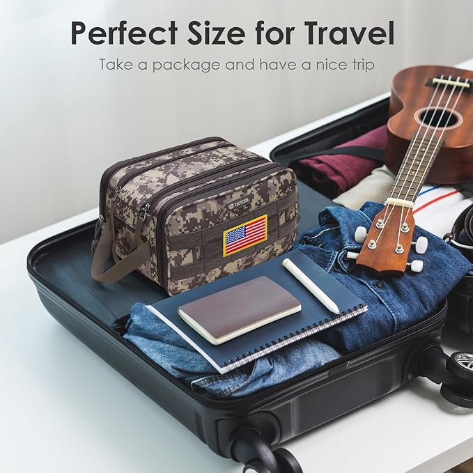 - Practical Designs: This tactical toiletry bag with side molle webbing provides the convenience of attaching tools and gadgets for easy access, or even a pouch for extra storage space. Our shaving bag for men travel features a convenient side carrying handle