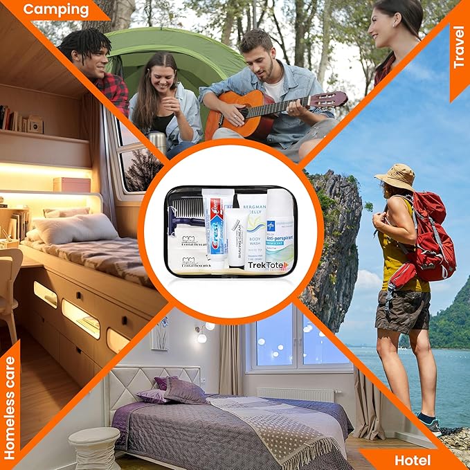 Trektote Travel Toiletry Kit For Men And Women – 10 Piece Set of Travel Size Toiletries, TSA Compliant, Includes Body Wash, Deodorant, Shaving Cream And Razor, Oral Care, Reusable Toiletry Bag & More
