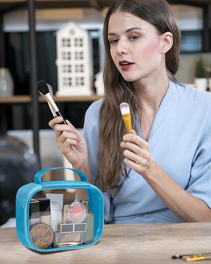 Moyad TSA Approved Clear Toiletry Bag, 1 Pack Quart Size 3-1-1 Liquids Pouch for Travel, Transparent Makeup & Cosmetic Organizer for Women Men, Blue