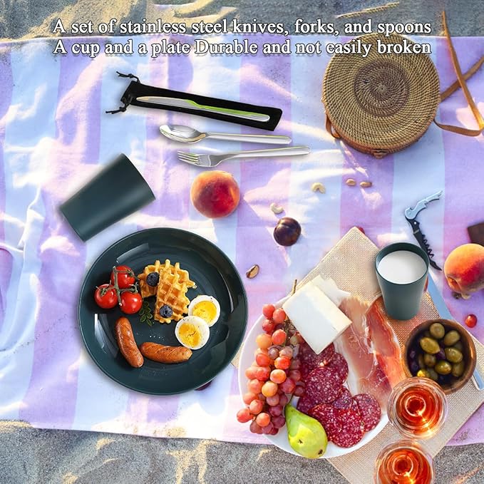 - HIGH QUALITY: The plates and cups of this camping set are made of pp material, BPA free. They are lightweight, unbreakable and sturdy, the stainless steel cutlery is made of high quality stainless steel, sturdy and durable.