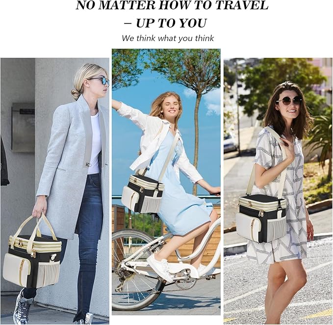 - 【Unique Design】 Lunch cooler bag has thicken fabric to make the bag stand upright, the meal bag will not be wrinkled and deformed. Double layer design can separate dry and wet. This lunch bag will keep your food warm for up to eight hours, depending on the environment. The bottom is PU leather with four plastic foot nails that is water-resistant and stain-resistant.