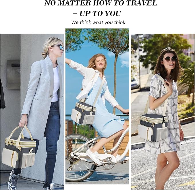Lunch Box & Lunch Bag for Women Men, Large Insulated Adult Lunch Box Leakproof Lunchbox Cooler Bag for Work Picnic Beach,16L, Grey & White