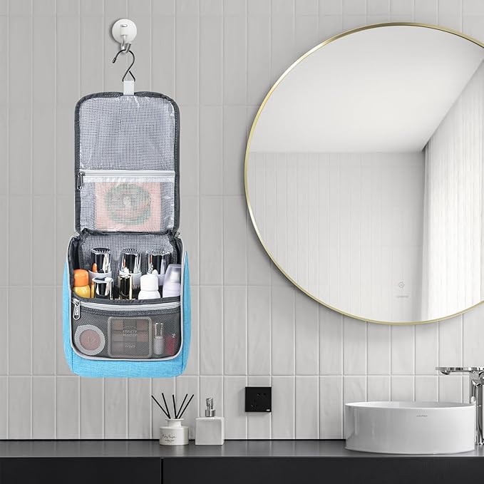 - Sturdy Metal Hooks: The sturdy hooks allow you to hang your toiletry bag on any hook, door, rod, etc. and can be rotated 360° for easy access