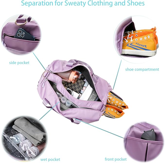 Women Gym Bag with Separation for Wet and Dry, Shoe Storage, Waterproof Travel Duffle Bag for Gym, Swimming, Yoga, Sports (Purple)