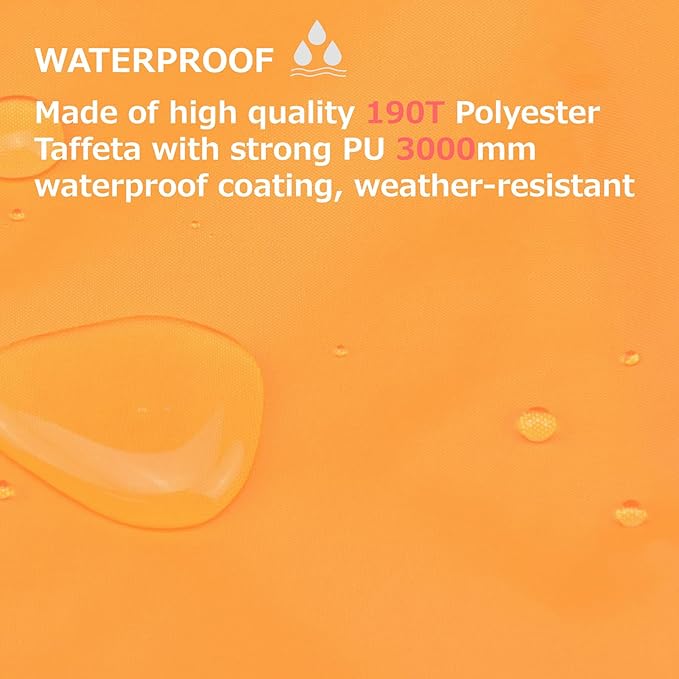 - ๐ WATERPROOF & UV PROTECTION: Made of 190T ripstop polyester taffeta fabric, the waterproof coefficient is up to 3000 mm, which protects you and your belongings from moisture and provides lasting protection. The sunshade can effectively block ultraviolet rays and protect skin from sunlight damage