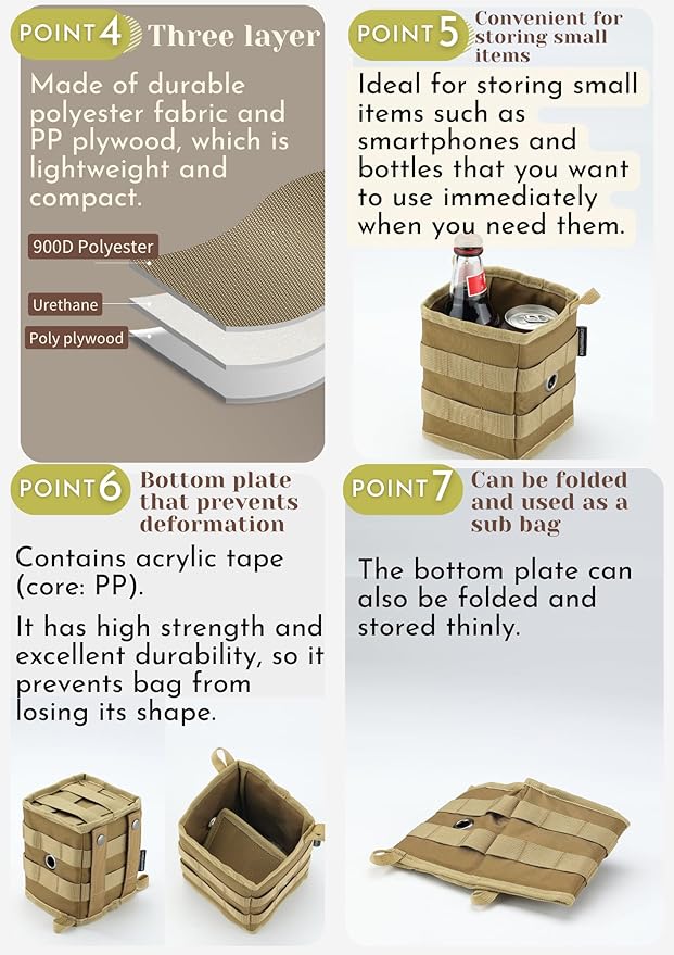 - Material 900D ballistic polyester : Item Weight 0.4 Pounds