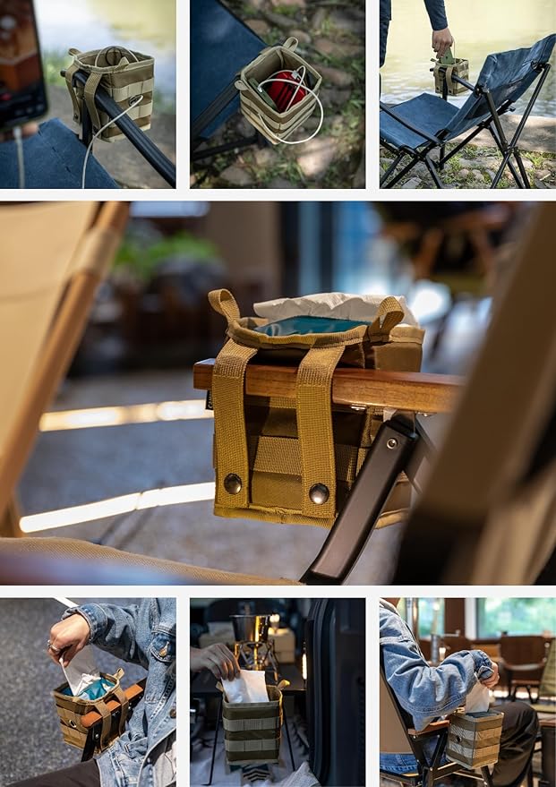 - 【Highly versatile】Use snap-button Molle strap. Can be attached to various camping chairs and racks.