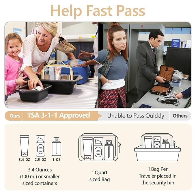 - TSA-approved & hassle-free security checks: This medium clear makeup bag measures 7.8 x 2.3 x 5.9 inches, perfectly complying with TSA’s 3-1-1 liquids rule and breeze through airport security without unpacking