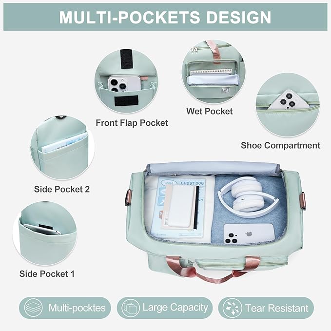 • 【Multifunctional Tote Bag】Our gym bag can be used for various indoor and outdoor activities. It can be used as a dry and wet separate bag, gym bag, dance bag, luggage bag, beach bag, cheer bag, mommy bag, hospital bag, nurse bags, overnight bag, weekender bag, which is the perfect partner for short-distance, travel and air travel.