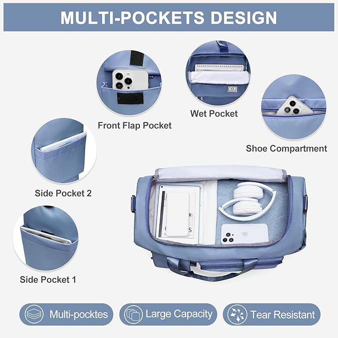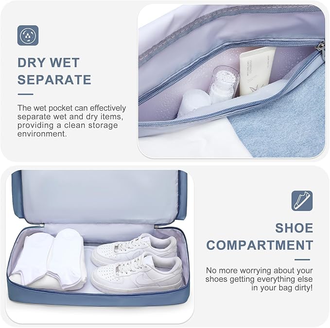 - 【Multifunctional Tote Bag】Our gym bag can be used for various indoor and outdoor activities. It can be used as a dry and wet separate bag, gym bag, dance bag, luggage bag, beach bag, cheer bag, mommy bag, hospital bag, nurse bags, overnight bag, weekender bag, which is the perfect partner for short-distance, travel and air travel.