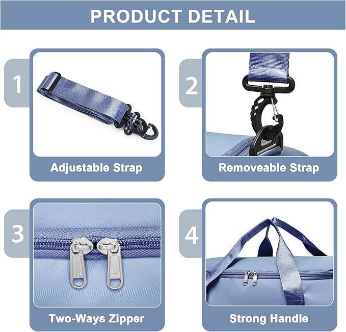 - 【SEPERATE TOILETRY BAG】:1. comes with a toiletry bag 2. comes with adjustable & detachable sling strap and unremovable handles.This is latest upgrade combination weekender travel bag set.