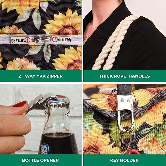 • ROOMY CAPACITY - sized at L22" x H15" x W6", there is plenty of space to securely store your wet beach towels, outfits, lotions, lipstick, cosmetics, magazines, other accessories. Sturdy and comfy rope handles make SHYLERO beach totes tremendous over-the-shoulder handbags for women
