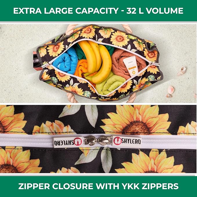 SHYLERO Beach Bag and Pool Bag. Has Airtight Pouch, Ton of Pockets. Beach Tote is Zippered, Water Resistant. Family Size