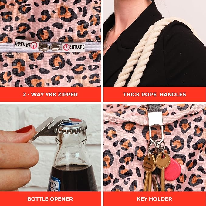 • ROOMY CAPACITY - sized at L22" x H15" x W6", there is plenty of space to securely store your wet beach towels, outfits, lotions, lipstick, cosmetics, magazines, other accessories. Sturdy and comfy rope handles make SHYLERO beach totes tremendous over-the-shoulder handbags for women