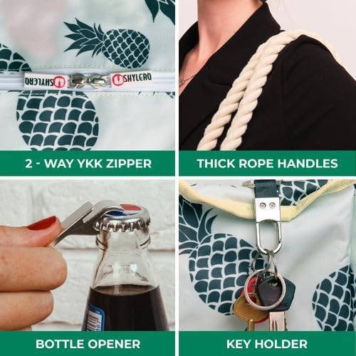 - ROOMY CAPACITY - sized at L22" x H15" x W6", there is plenty of space to securely store your wet beach towels, outfits, lotions, lipstick, cosmetics, magazines, other accessories. Sturdy and comfy rope handles make SHYLERO beach totes tremendous over-the-shoulder handbags for women