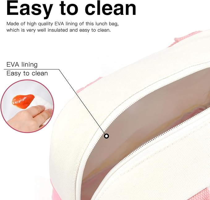 - 【Easy to Clean&Waterproof】The waterproof interior lining of the cute lunch box for women makes cleaning a breeze. Simply wipe with a towel or tissue, keeping your lunch pail for women fresh and ready for the next use.