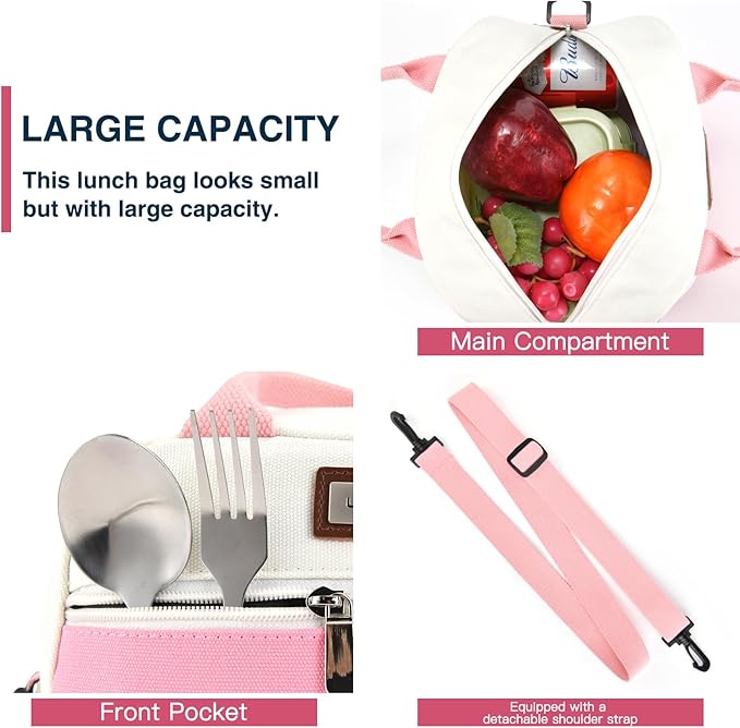 - 【Hands-Free Design】 Our small lunch bag features an adjustable shoulder strap, providing comfortable and convenience, especially when cycling or having your hands full. Adjust the strap of aesthetic lunch box to your preferred length and carry your lunch effortlessly wherever you go. Stay on the move while keeping your hands free and enjoy the convenience of aesthetic lunch bag with strap.