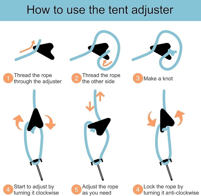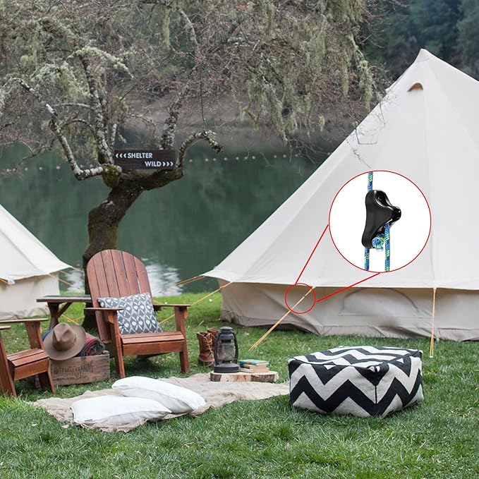- EXTENSIVE APPLICATIONS: Rope adjusters are suitable for tarps, tents, awnings, lean-to shelters, etc. Easy to bind objects properly at outdoors or indoors.