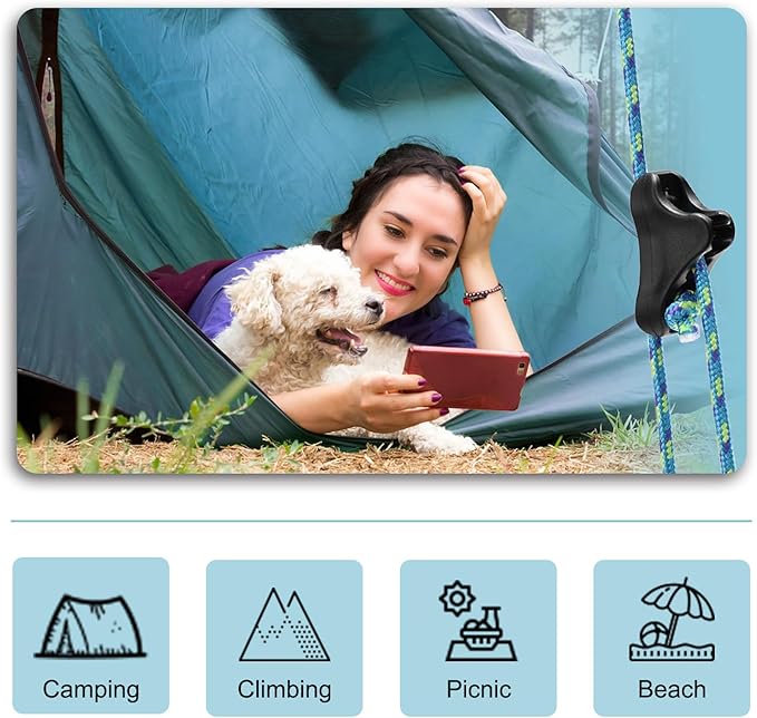 - IDEAL FOR OUTDOOR ACTIVITIES: You can wrap your rope around a tree as easily as around a spike in the ground and easily adjust your tent guylines . Once in place it holds the rope securely guyline tensioner rope tightener is designed to make your camp life easier.