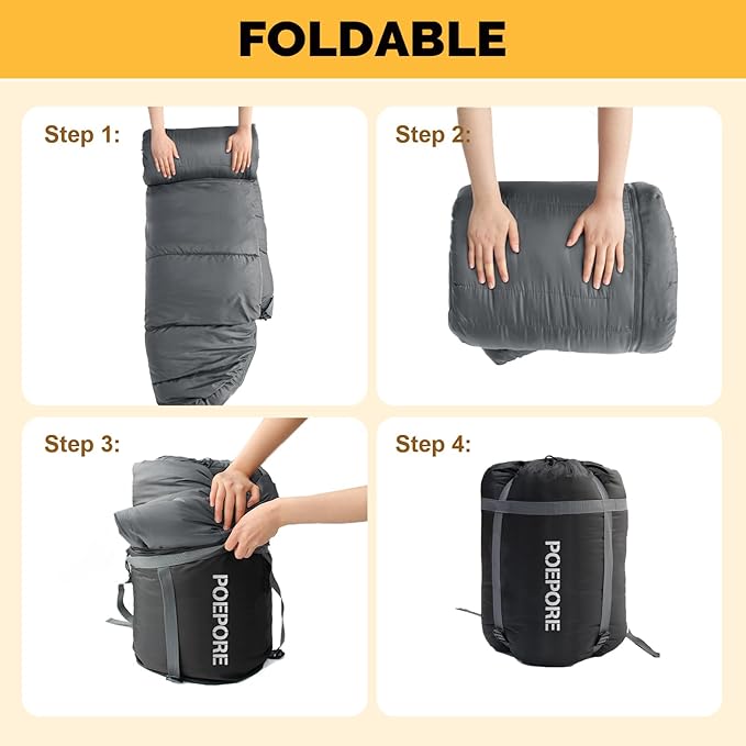- Multiple Scenes: The sleeping bag comes with a compression bag, allowing easy rolling and convenient portability. Whether it's camping, traveling, outdoor adventures, or indoor overnight stays, the sleeping bag provides a comfortable sleeping environment. It also offers additional insulation in lower temperatures or harsh environments, protecting users from cold or damp conditions. Therefore, the POEPORE sleeping bag is an essential piece of equipment for outdoor enthusiasts and travelers.