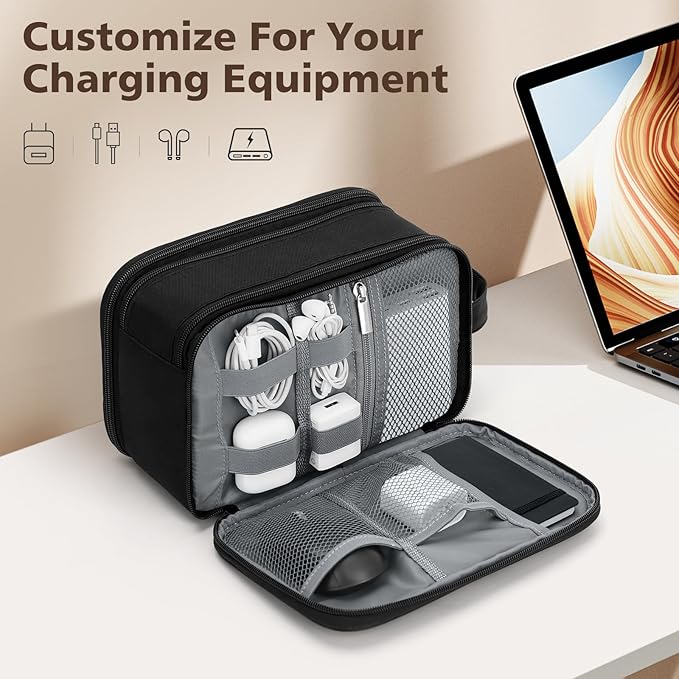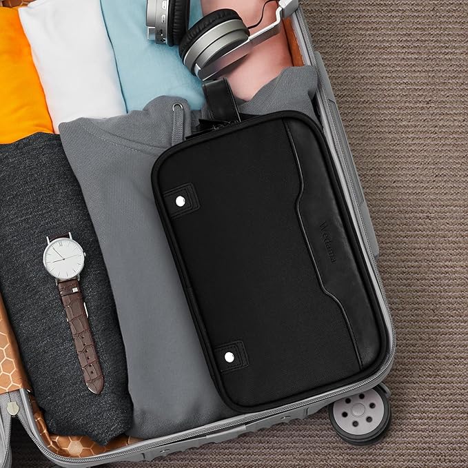 - Extra Electronic Organizer: Wedama toiletry bag for men is designed with electronic cable organizer compartment. The multiple mesh pockets and elastic loops are great for taking your cords, cables, USB drive, cellphone, charger, mouse, flash drive, and other accessories, which also protect your electronics accessories. Saying goodbye for messy cords, making your life happier.
