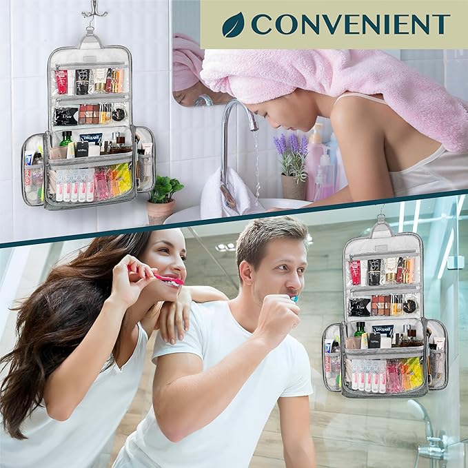 - EASY TO CLEAN: Simply wipe clean with damp cloth to maintain the toiletry bag travel bag. With its water resistant polyester fabric and waterproof compartment, this travel kit for women keeps your travel-size item, shampoo, conditioner, lotion, face wash, medicine, toothpaste, toothbrushes, hair brush and daily makeups protected and organized for every trip, cruise, flight! A must have for every travel packing list!