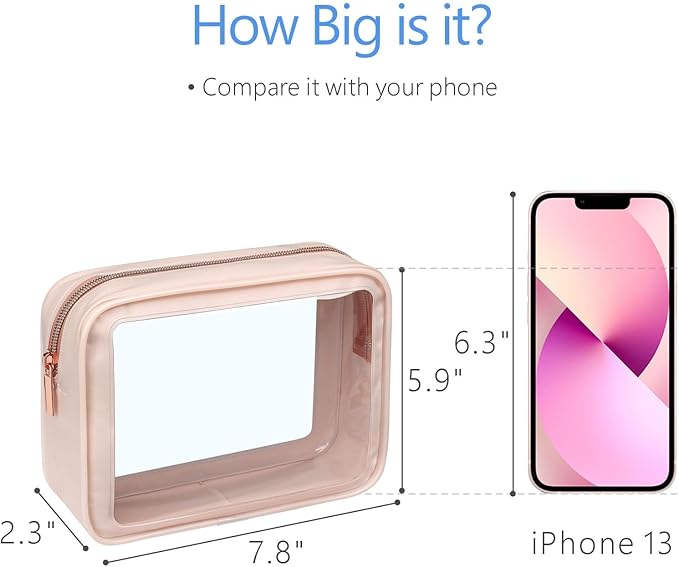 - TSA Approved Hassle-Free Pass: Our medium clear travel bags (8.07 x 2.35 x 5.91 inches) comply with the 3-1-1 rules, ensuring a smooth journey through airport security and save your time
