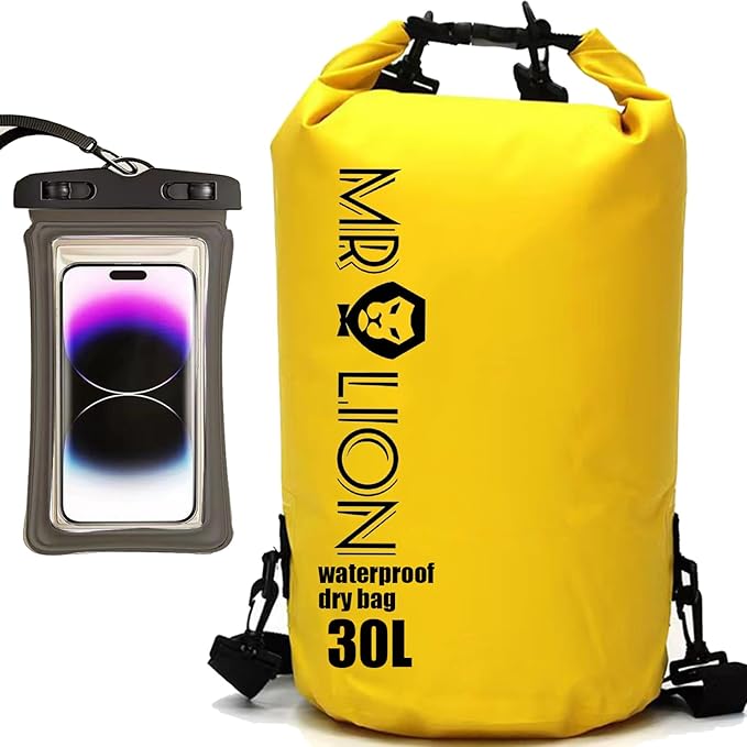 MR LION Waterproof Dry Bag - Roll Top Waterproof Backpack Sack Keeps Gear Dry for Kayaking, Beach, Rafting, Boating, Hiking, Camping and Fishing with Waterproof Phone Case (Yellow 30L)