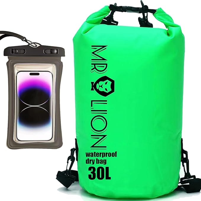 MR LION Waterproof Dry Bag - Roll Top Waterproof Backpack Sack Keeps Gear Dry for Kayaking, Beach, Rafting, Boating, Hiking, Camping and Fishing with Waterproof Phone Case (Green 30L)