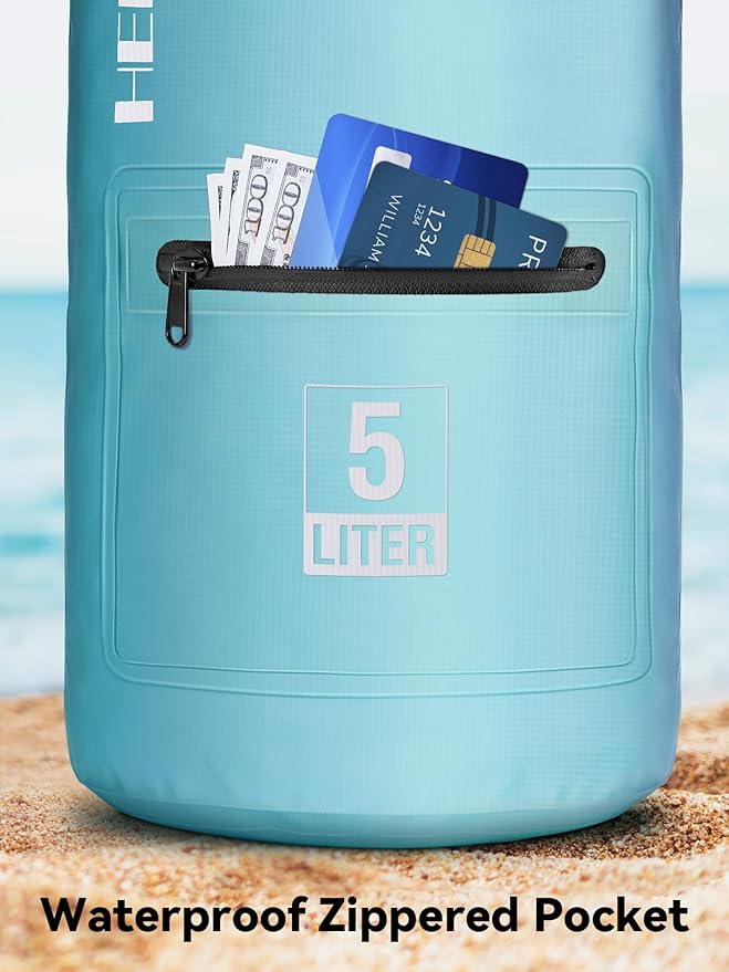 HEETA Waterproof Dry Bag with Front Zippered Pocket for Women Men, 5L/10L/20L/30L/40L Roll Top Lightweight Dry Storage Bag Backpack for Travel, Kayaking, Boating, Rafting, Camping, Hiking & Beach