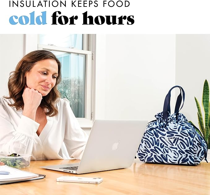 Fit & Fresh Lunch Bag For Women, Insulated Womens Lunch Bag For Work, Stain-Resistant Large Lunch Box For Women With Containers, Cinch Closure Cromwell Bag Navy Brush Strokes