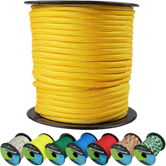 West Coast Paracord 550lb Paracord Spools – 7 Strand Type III Tactical Parachute Cord for Hiking, Camping, and Fishing – Yellow (1,000 ft)