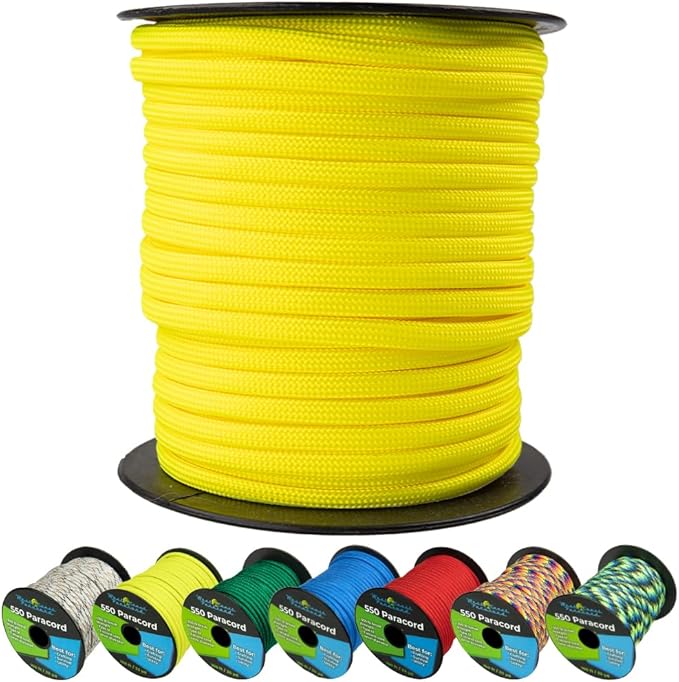 West Coast Paracord 550lb Paracord Spools – 7 Strand Type III Tactical Parachute Cord for Hiking, Camping, and Fishing – Neon Yellow (100 ft)