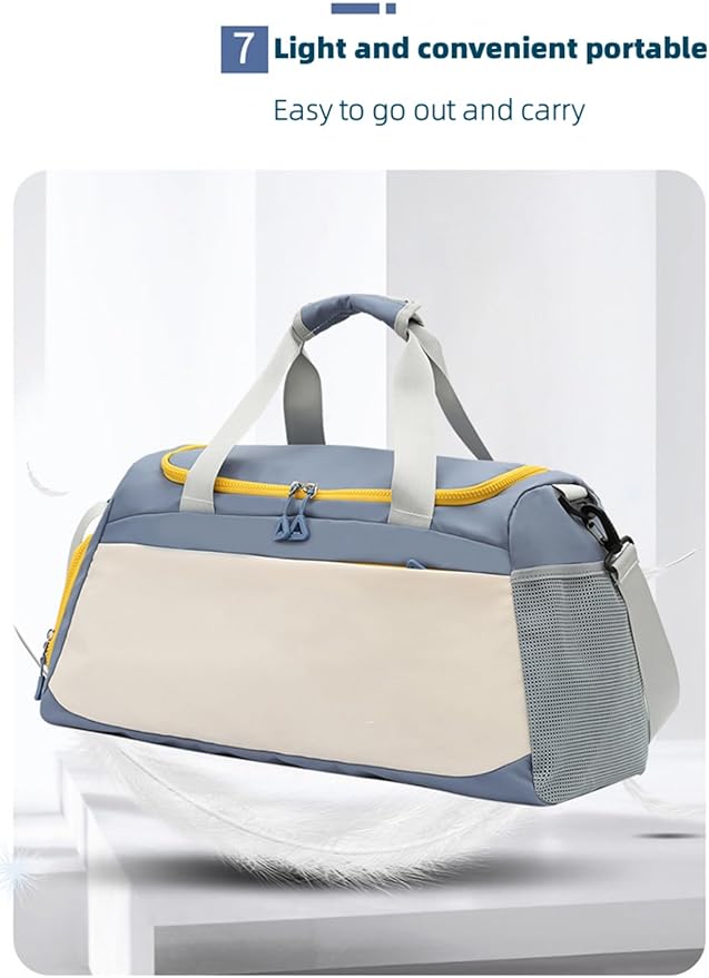 - 4. Wet and dry separation design: Our gym bag has a wet and dry separation design, which can keep your sweaty clothes and towels and swimsuits separately. There are dedicated compartments for shoes to separate dirty shoes from the rest of the equipment.
