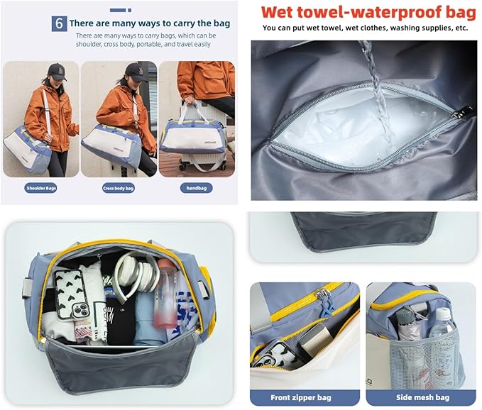 - 3. Compatibility: Our gym bag comes with a separate toiletry bag, which can be used for various indoor and outdoor activities, such as travel, sports, weekend trips, yoga, gym, beach, business or other daily use. It can also be used as a travel bag, training bag, tote bag, dance bag, duffel bag, beach bag, mom bag, overnight bag, weekend bag, etc., you can carry it with you wherever you go.