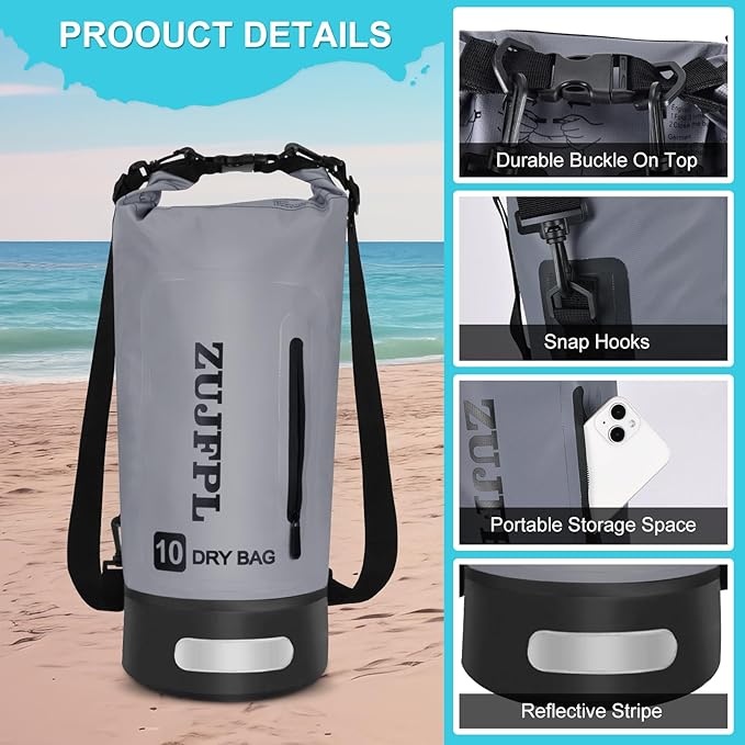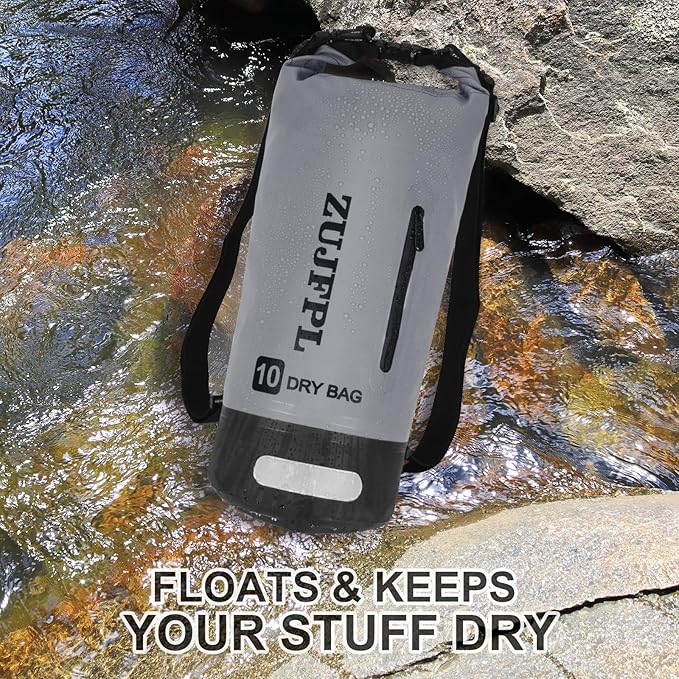 - 5. Organized and Stylish: In addition to its waterproof capabilities, our ZUJFPL Dry Bag features a splash-proof zipper pocket on the outside. This pocket offers convenient storage for smaller essentials such as wallets, sunglasses, keys, and more, ensuring that your backpack stays neat and organized at all times. With its sleek and modern design, our dry bag not only delivers exceptional performance but also adds a touch of style to your outdoor gear collection.