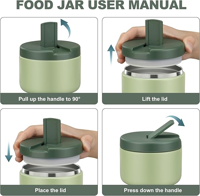 - 【Keep Food Warm for a Long Time】The food jar apply double-wall vacuum insulation. At room temperature, keep soup hot for 6 hours, cold for 12 hours. Small size and light weight, suitable for home, work or picnic etc. How to preheat food more effectively: fill it with boiling water for about 5-8 mins first to get it good and warm.