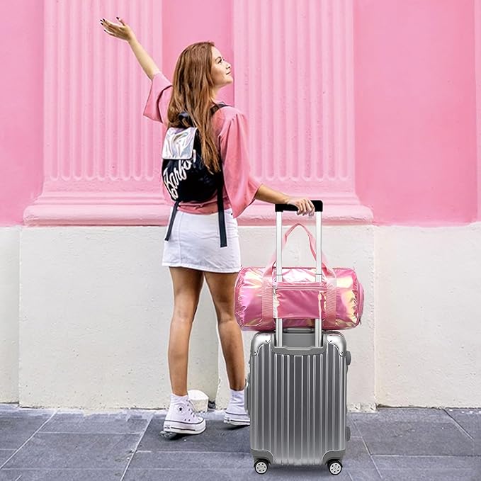 Gym Bag Sports Duffle Bag with Wet Pocket Weekender Overnight Bag with Waterproof Shoe Pouch and Air Hole for Girls Kids Women Travel Foldable Bag