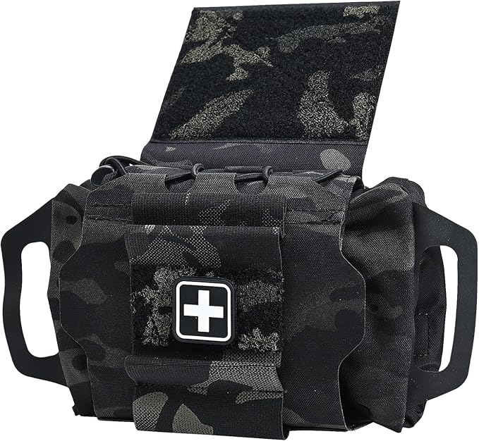 SABADO Rapid Deploy IFAK Pouch First Aid Kits Pack Tactical Two-piece System Medical Supply Holder Roll Carrier Hypalon Handle Outdoor Sport Hunting Bag Laminated Matting Fabric